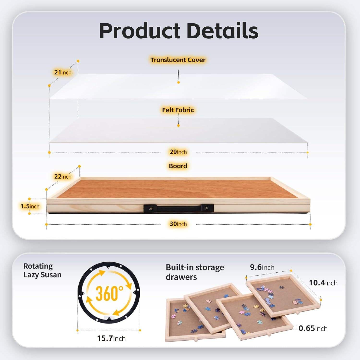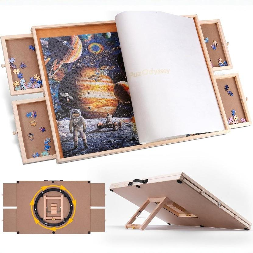 Polished Wooden Jigsaw Puzzle Table With Drawer Cover